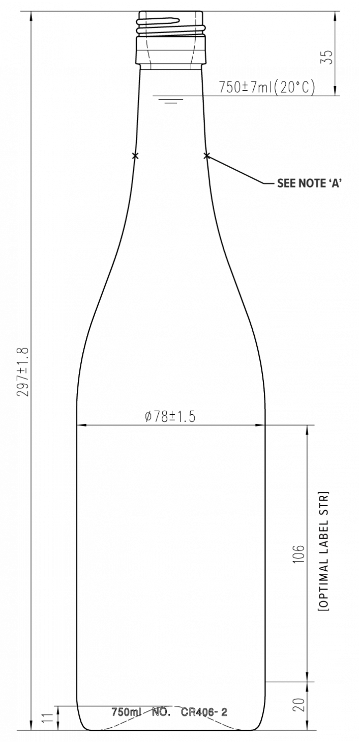 NOTE A: CONTROLLED NECK & MOUTH REFER TO DIMENSIONAL SPECIFICATIONS FOR BVS GLASS MOUTH FINISH Norm: EN16293